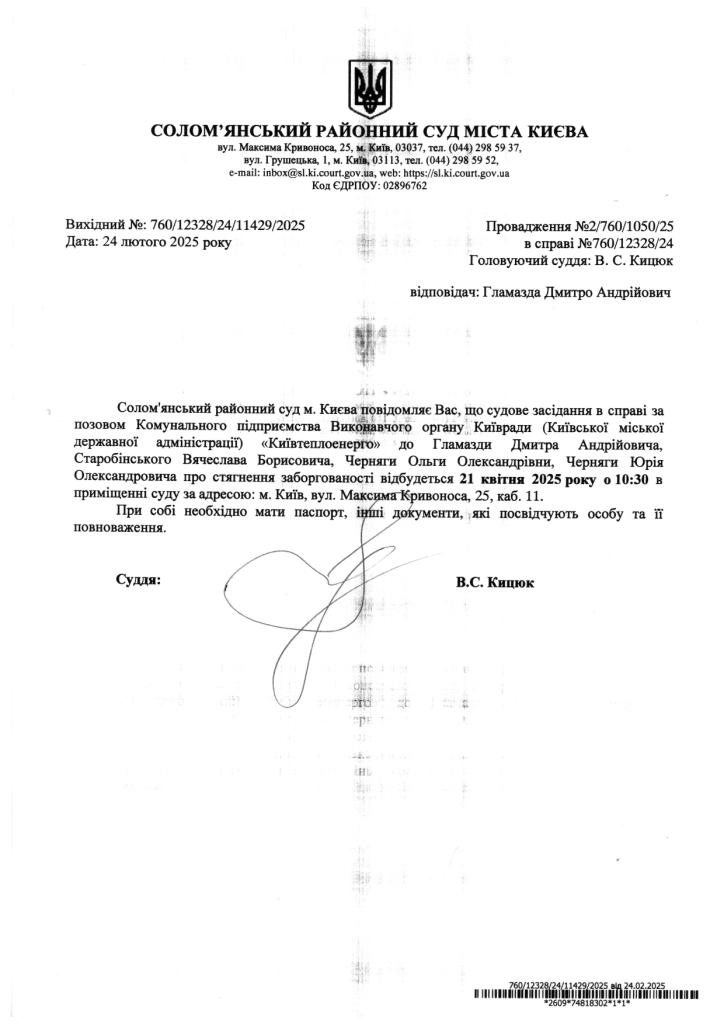 Оголошення про виклик до суду про справі 760/12328/24 Гламазда Д.А.