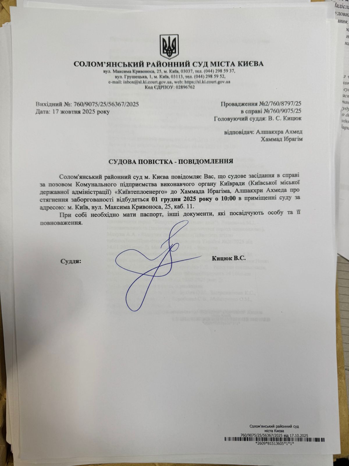 Оголошення про виклик до суду про справі 760/9075/25 Алшакхра Ахмед