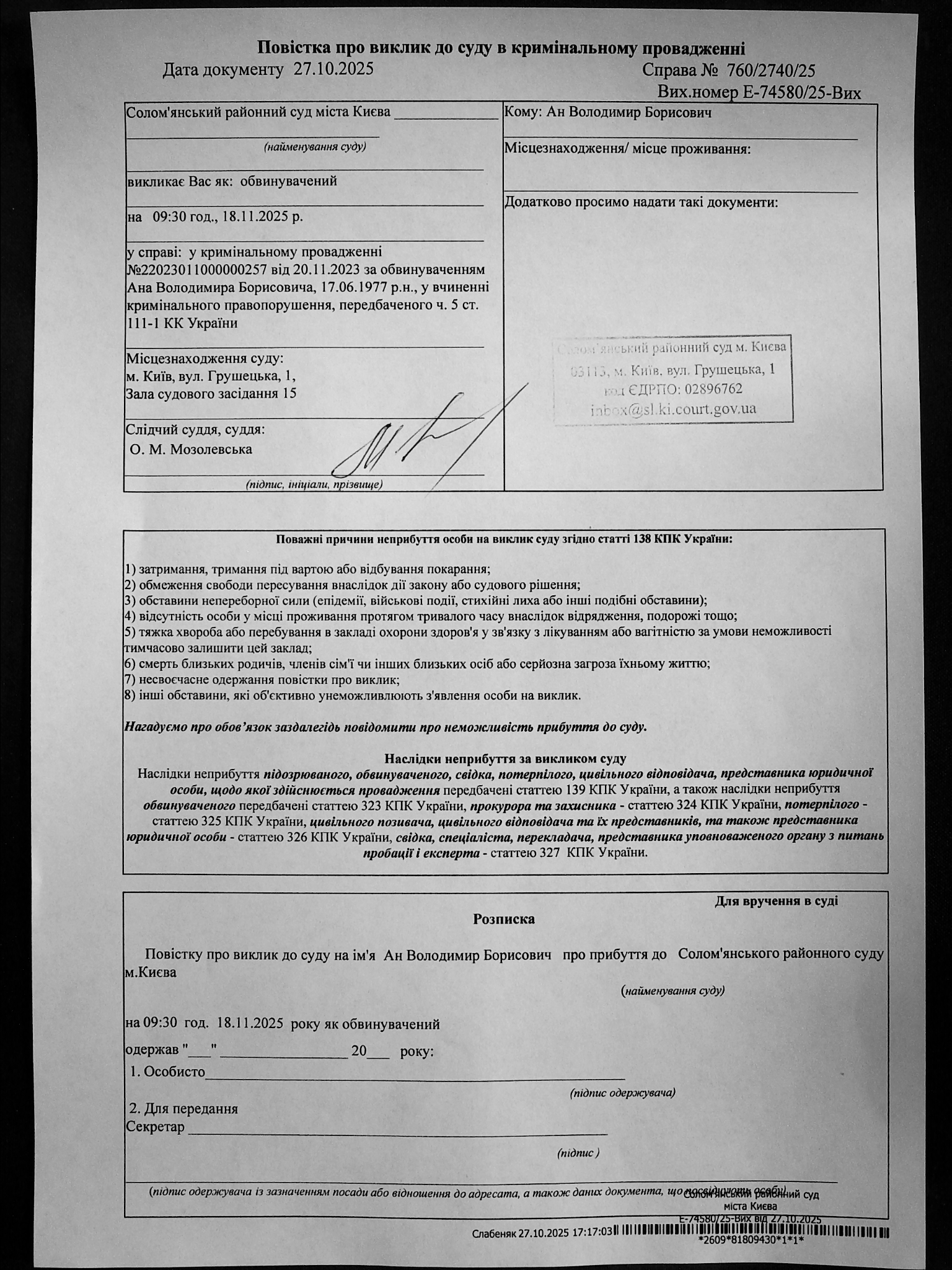 Оголошення про виклик до суду про справі 760/2740/25 Ан В.Б.