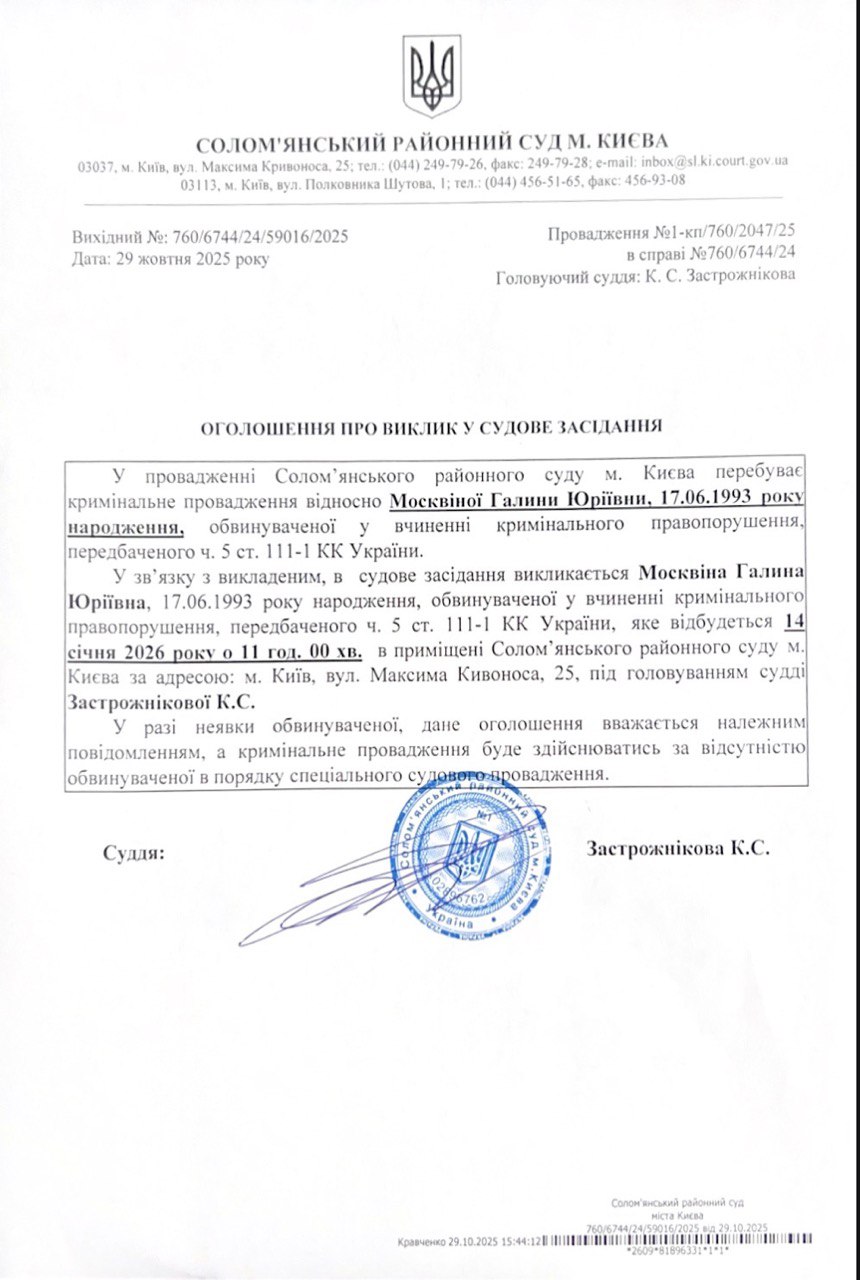 Оголошення про виклик до суду про справі 760/6744/24 Москвіна Г.Ю.