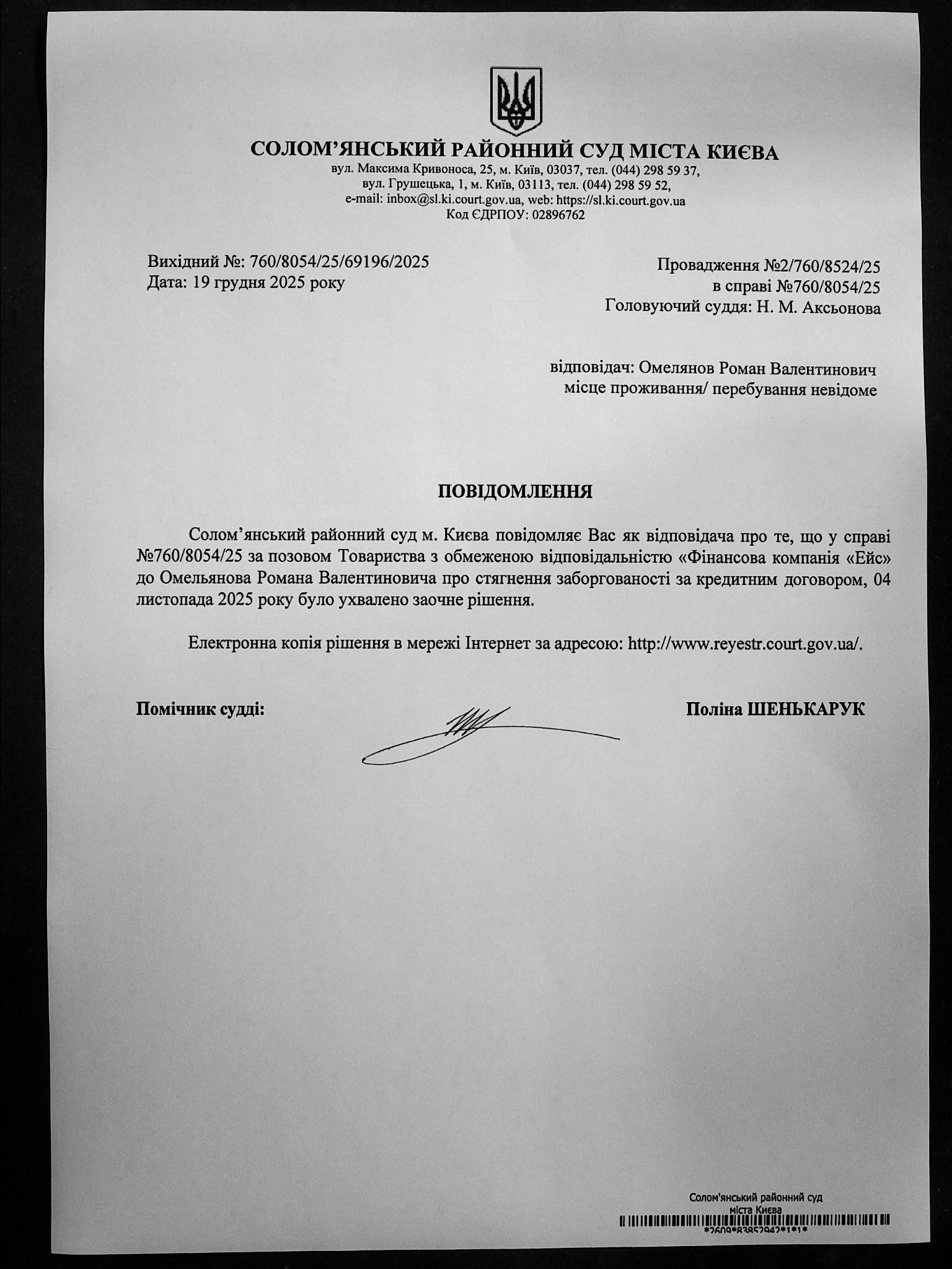 Оголошення про виклик до суду про справі 760/8054/25 Омелянов Р.В.