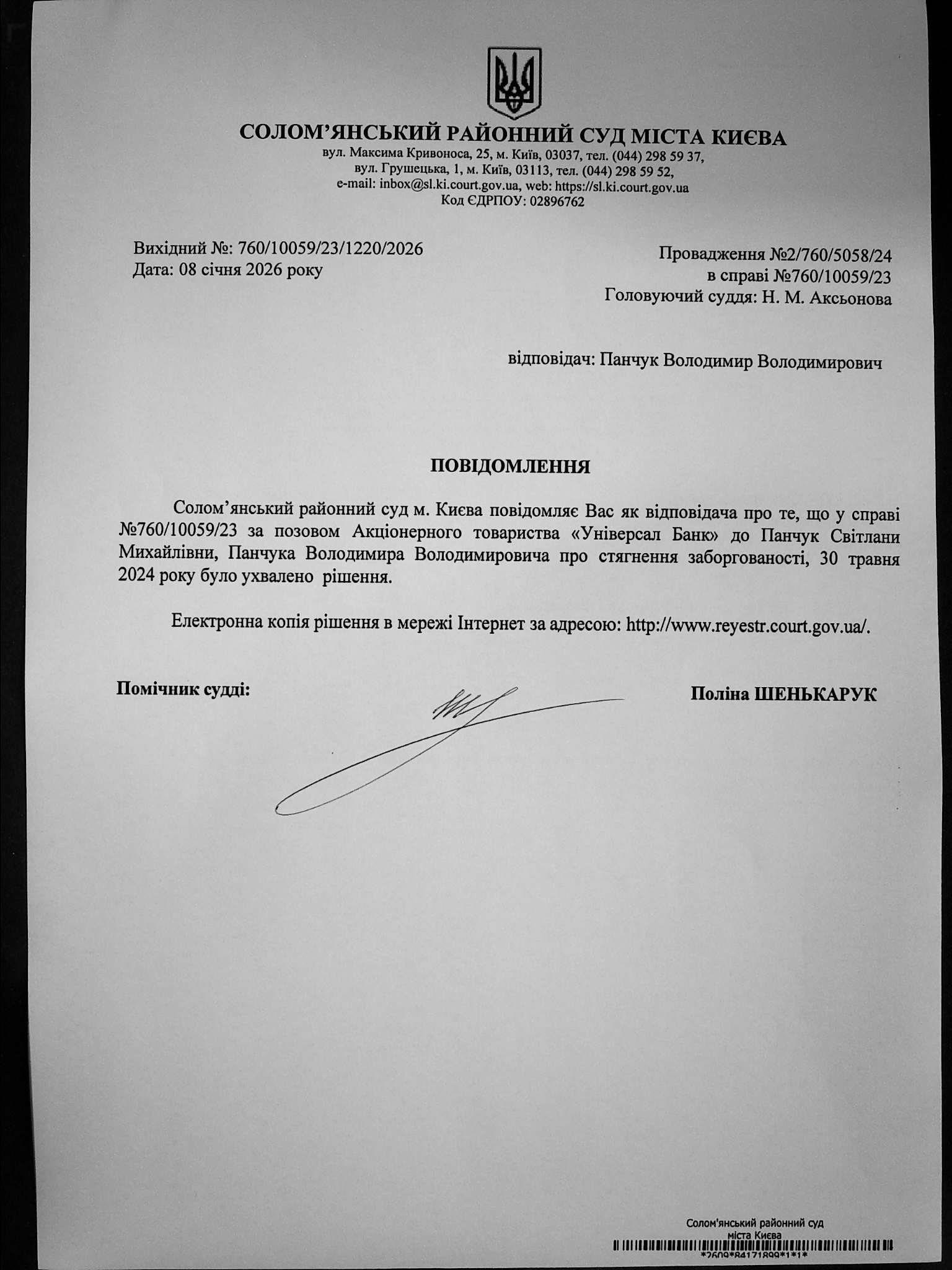 Оголошення про виклик до суду про справі 760/10059/23 (2) Панчук В.В.