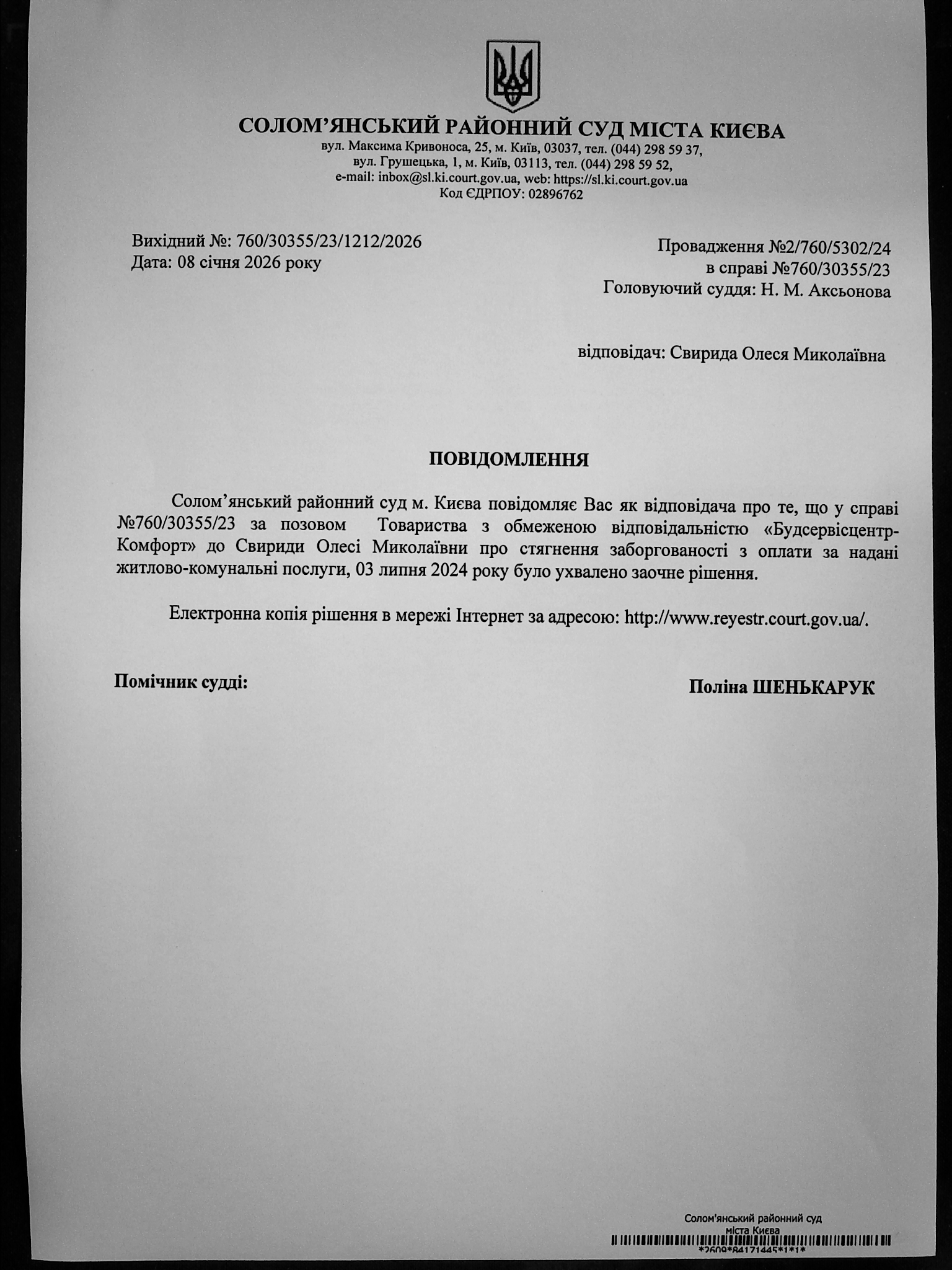 Оголошення про виклик до суду про справі 760/30355/23 Свиридова О.М.