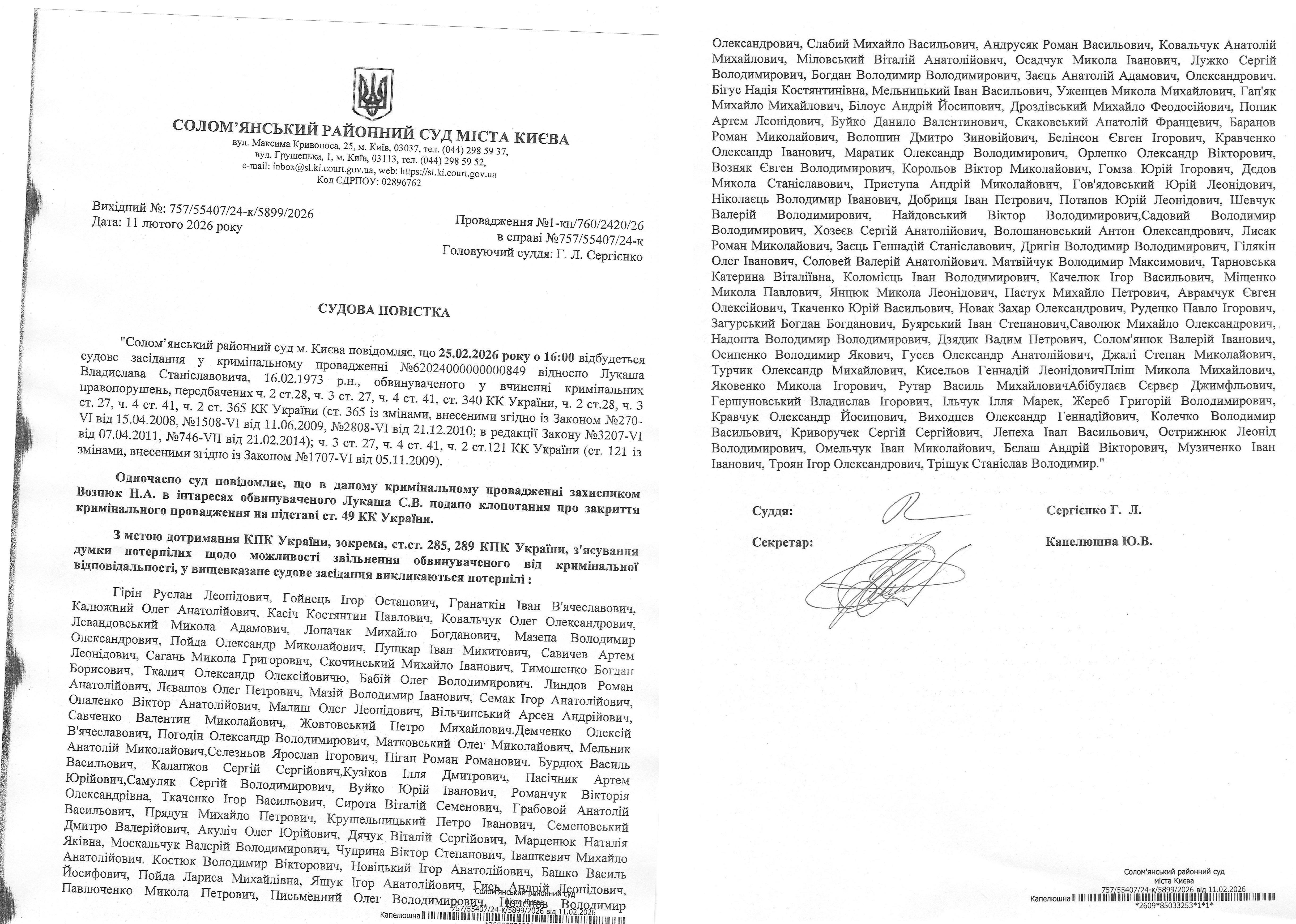 Оголошення про виклик до суду про справі 760/55407/24-к Лукаш В.С. (1)
